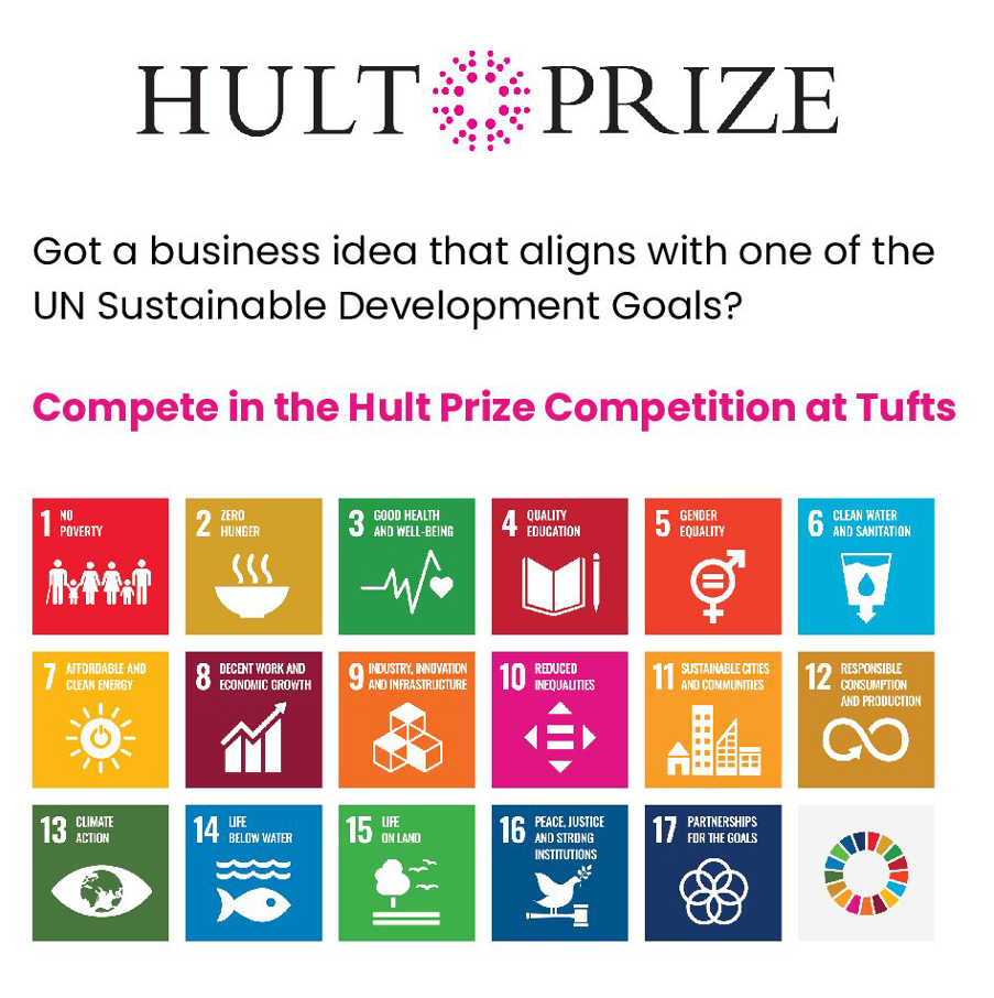 Register to watch live pitches for the Tufts Hult Prize, where students are challenged to support at least one UN Sustainable Development Goals (SDG)!