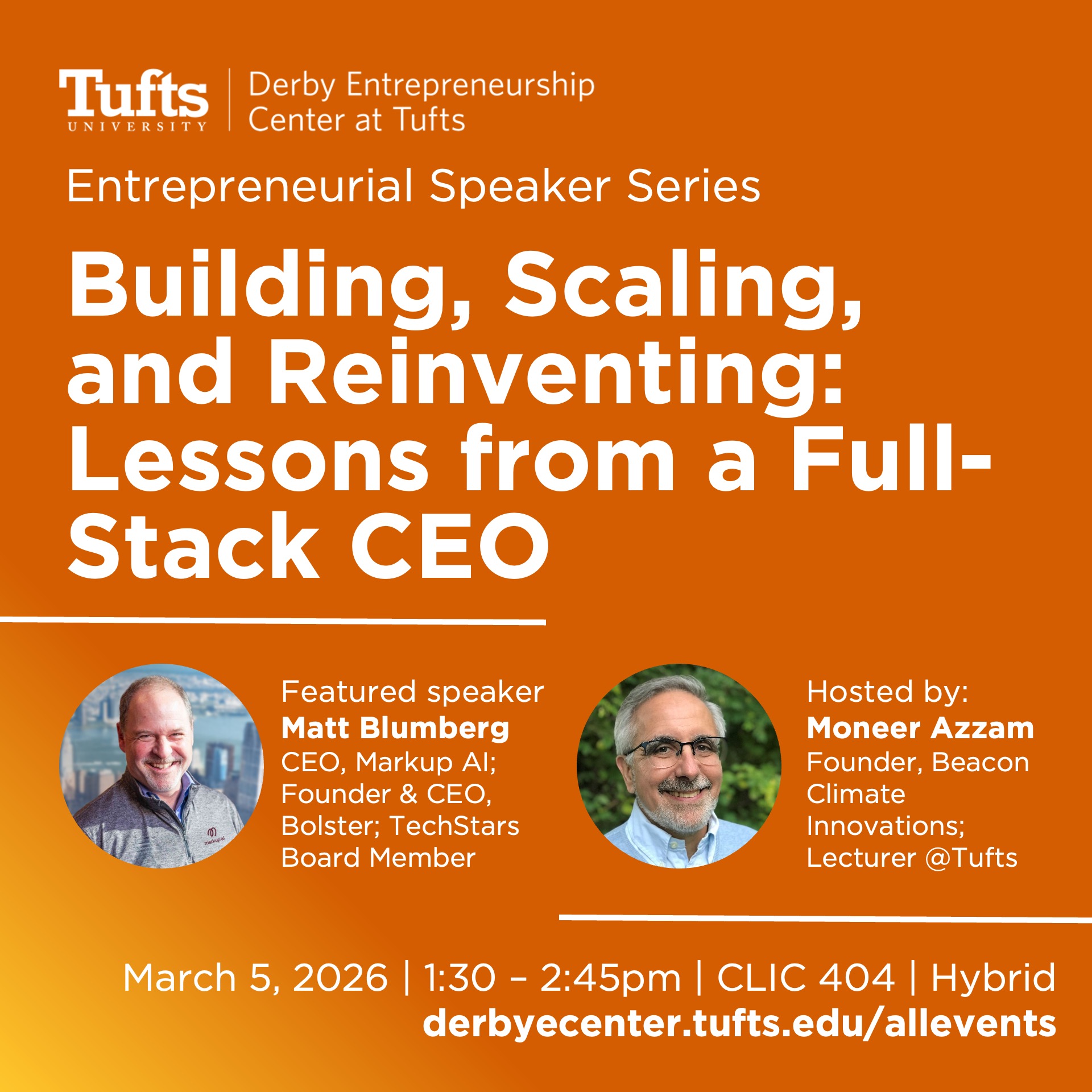 Students will leave with practical takeaways and pro tips for applying entrepreneurial thinking in real life—whether you’re launching a startup, joining a fast-growing company, or bringing founder energy to any role or organization.